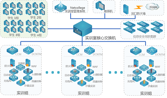 信息安全实训室的建设要求安全实训室方案具有极强的适用性,适用于不同的情况。实验内容应包括端口隔离技术、动态包检测技术、主机安全技术、信息安全技术、病毒、木马、网络扫描与侦听、流量工程、入侵检测、入侵防御、内网审计、认证计费以及真实项目再现的大型综合实验。