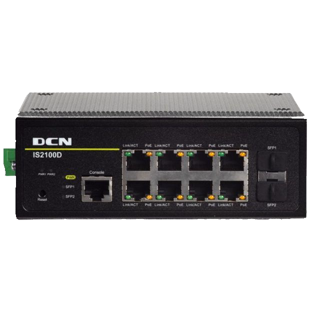 | IS2100D-2GF8GT-P | IS2100D-2GF8GT-P 卡轨式POE工业以太网交换机,(8个千兆电口+2个千兆SFP口) 全部电口支持最大30W (802.3at标准)供电,最大PoE供电功率180W |
